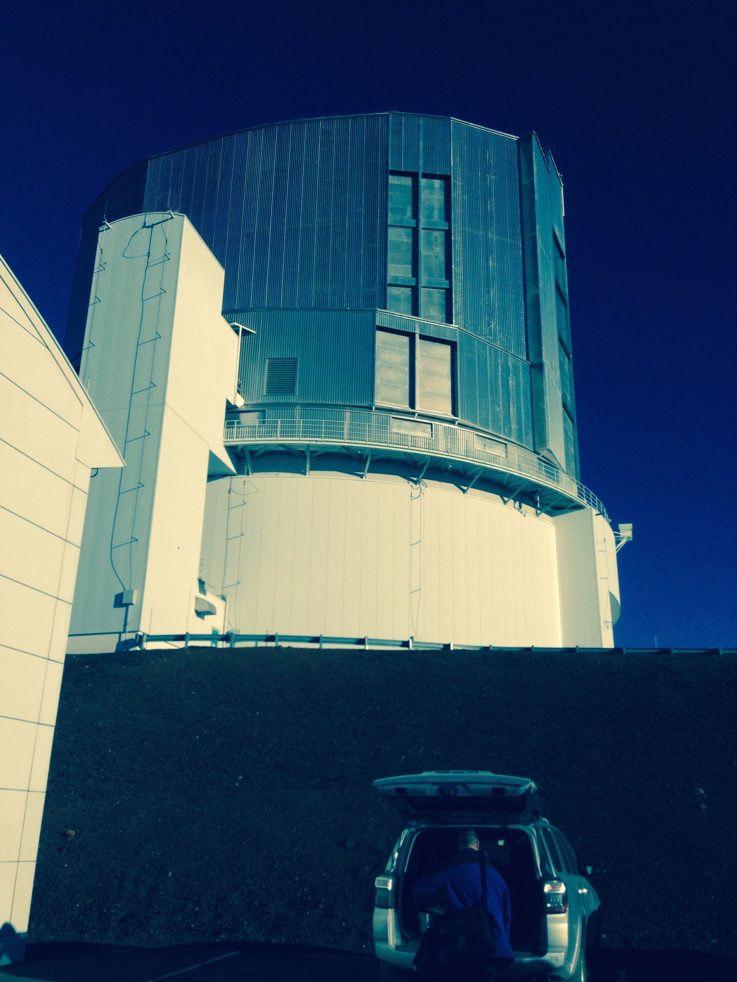 Building the Subaru Telescope is housed in. The building on the white building on the right that is partially in the frame is where the control room is.